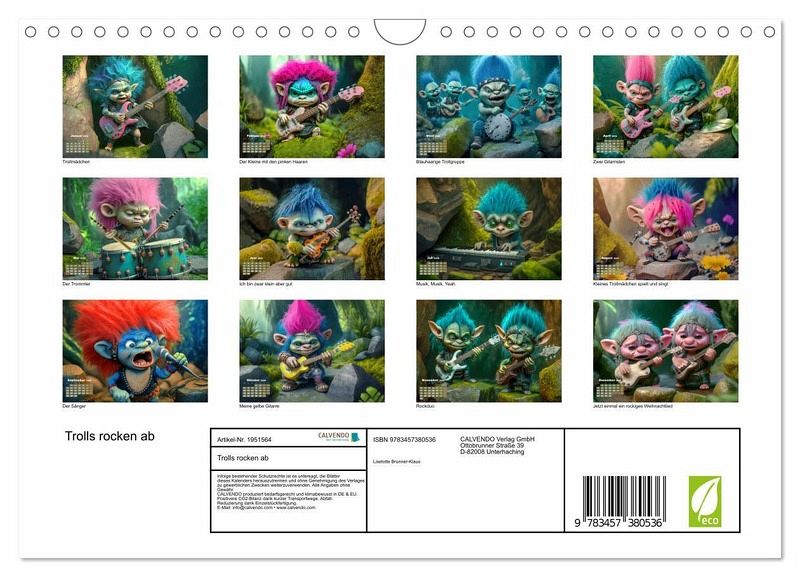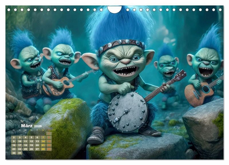 Jeder Monat zeigt die Trolls in ihrer ganzen Pracht - von den diversen wilden Gitarren bis hin zum energiegeladenen Trommler. Mit ihrem charismatischen Auftreten und ihrer humorvollen Art wird die Band schnell zu Ihrem neuen Lieblings-Formation.