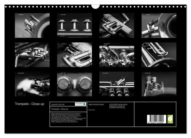 QUALITÄT - Hochwertiger Fotokalender mit 12 wunderschönen Motiven auf lichtbeständigem Bilderdruckpapier, robuste Spiralbindung mit Aufhängebügel.NACHHALTIG - deutliche Abfallreduzierung durch bedarfsgerechte Einzelstückfertigung,umweltfreundliches FSC-zertifiziertes Papier, Produktion in Deutschland, klimabewusste Logistik.PERFEKTES GESCHENK - Kalender für Freunde und Familie, für Kinder und Erwachsene, jung und alt, zu Weihnachten, Geburtstag oder zwischendurch.VIELFALT - Bildkalender in verschiedenen Formaten, z.B. DIN A5, DIN A4, DIN A3 sowie DIN A2. Ob Naturmotiv, Gemälde oder Fotos, ideal für ein persönliches Wohlfühlambiente.Detailaufnahmen einer Trompete von Autor(in): Silvia Drafz