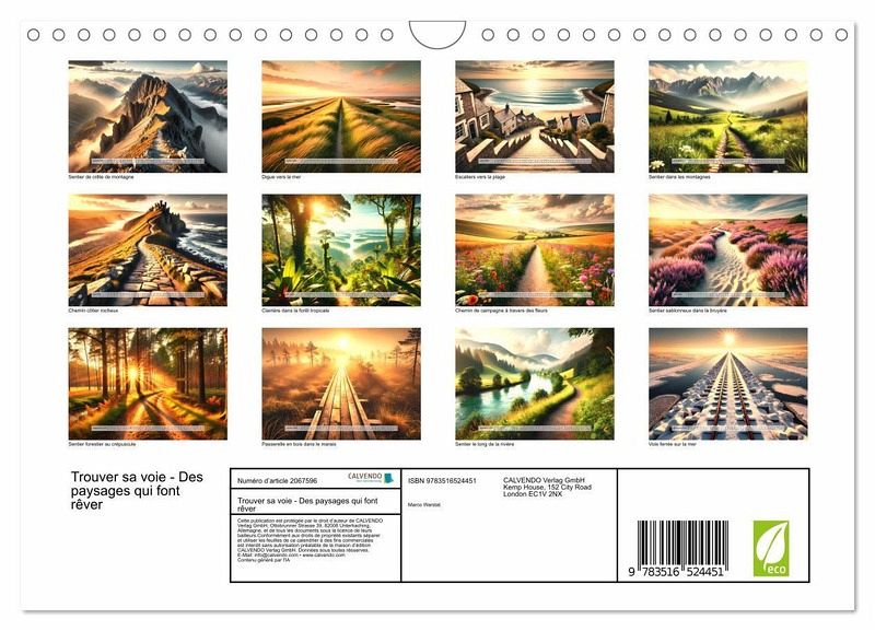 Découvrez des chemins qui mènent à des paysages vastes et magnifiques, chacun invitant à la contemplation et à l'exploration. Des forêts paisibles aux côtes infinies en passant par des montagnes escarpées, chaque image capture la diversité naturelle et l'harmonie du monde. Créé avec l'aide de l'IA, ce calendrier offre des perspectives uniques et inspirantes.
