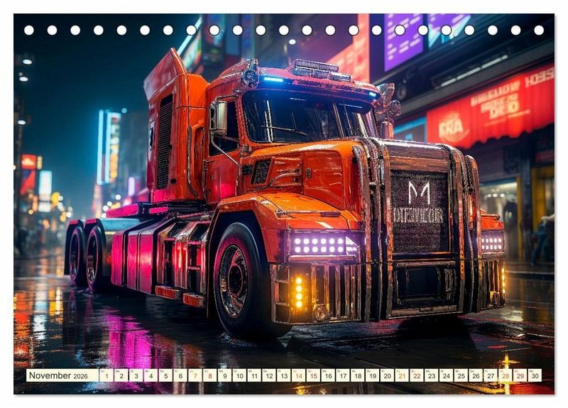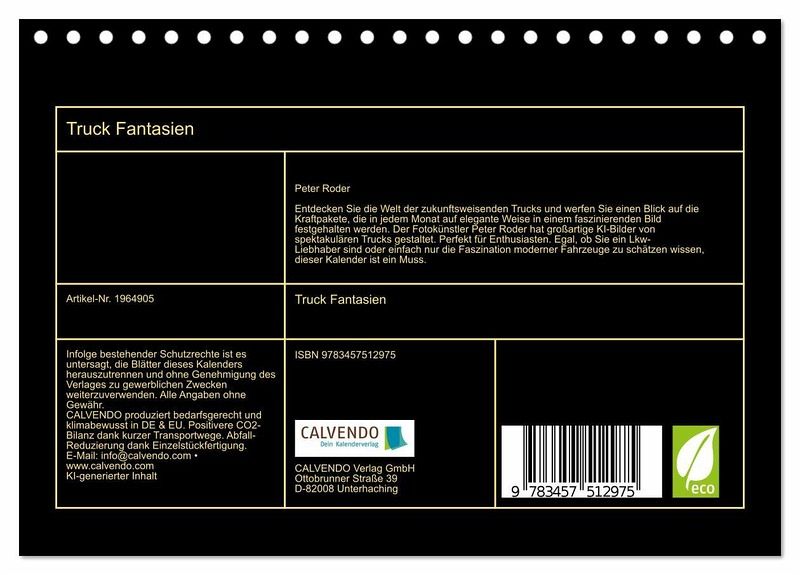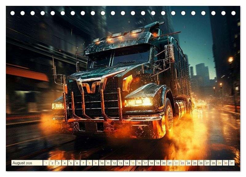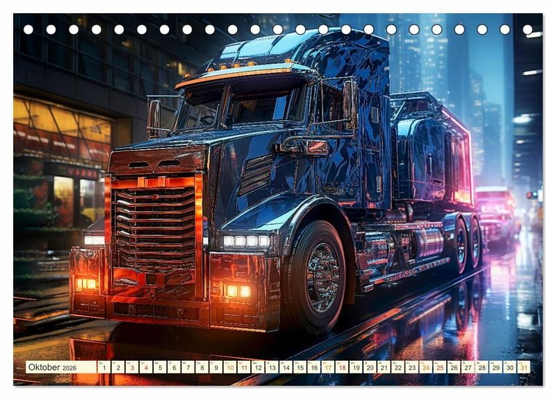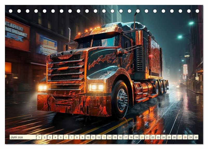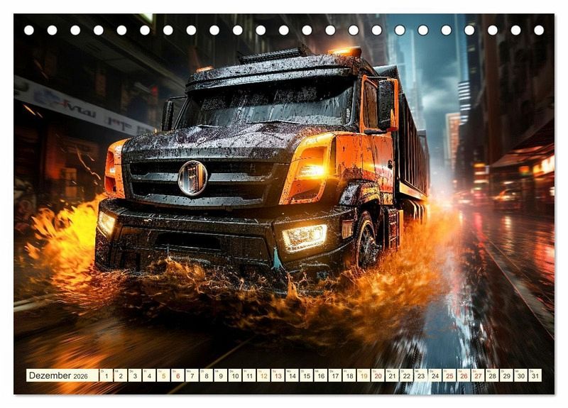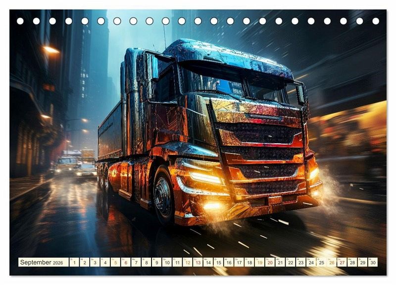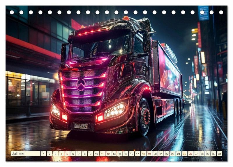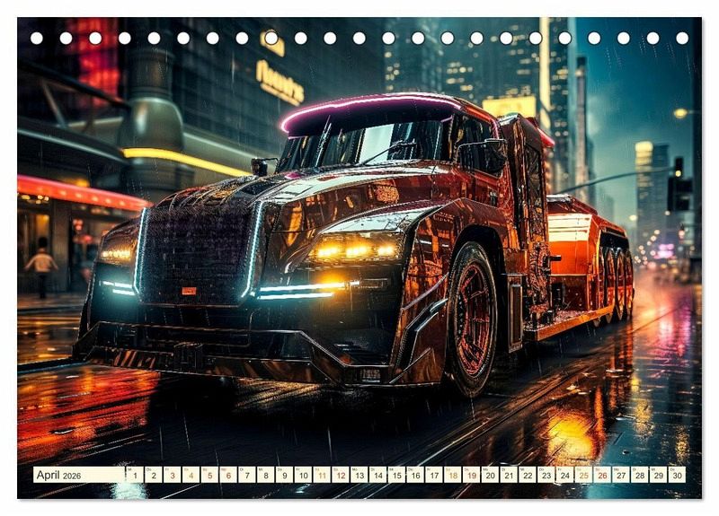 Entdecken Sie die Welt der zukunftsweisenden Trucks und werfen Sie einen Blick auf die Kraftpakete, die in jedem Monat auf elegante Weise in einem faszinierenden Bild festgehalten werden. Der Fotokünstler Peter Roder hat großartige KI-Bilder von spektakulären Trucks gestaltet. Perfekt für Enthusiasten. Egal, ob Sie ein Lkw-Liebhaber sind oder einfach nur die Faszination moderner Fahrzeuge zu schätzen wissen, dieser Kalender ist ein Muss.