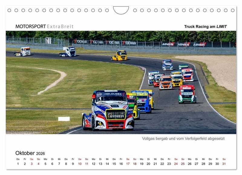 Die beiden Autoren und motorsportbegeisterten Fotografen beschreiben mit exklusiven Aufnahmen im Panoramaformat, was es bedeutet, wenn sich tonnenschwere Race Trucks "ein knallhartes Rennen liefern". Der Betrachter ist quasi live an der Strecke und erlebt hautnah, wie die Fahrer ihre Boliden auf dem anspruchsvollen Nürburgring am Limit bewegen: Waghalsige Überholmanöver, spektakuläre "Verbremser", Kampf um jeden Meter - Adrenalin pur, vom Start bis ins Ziel. In der Kalenderserie "MOTORSPORT ExtraBreit" unterstreichen ausdrucksstarken Panoramabilder die besondere Faszination dieses Rennsports.
