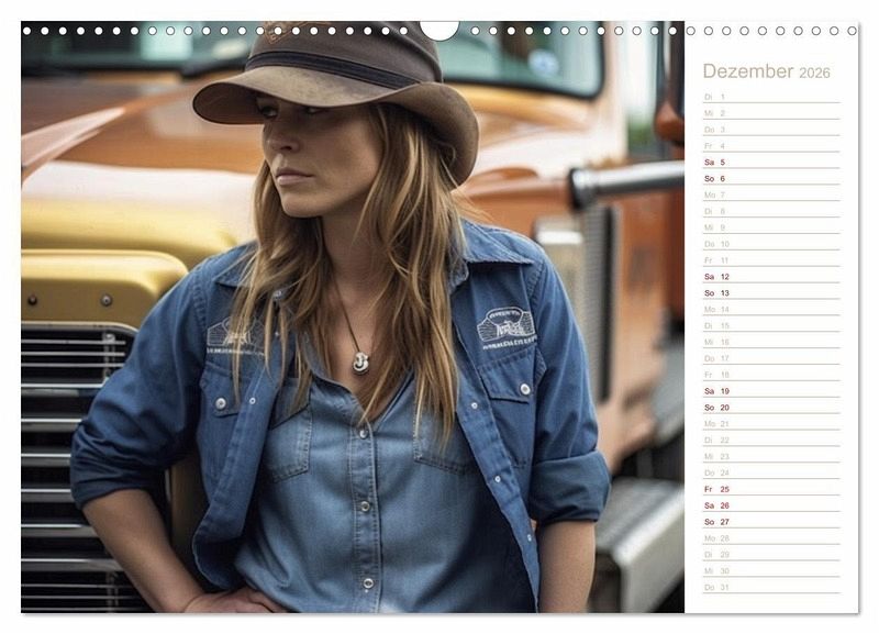Willkommen in der Welt der modernen und inspirierenden Truckerinnen! Der brandneue Kalender mit künstlicher Intelligenz erstellten Bildern ist jetzt erhältlich und bietet Ihnen eine unglaubliche visuelle Erfahrung, die Sie in die Welt des Straßentransports eintauchen lässt.Jedes Bild in diesem Kalender wurde von einem fortschrittlichen künstlichen Intelligenz-Algorithmus erstellt und zeigt LKW-Fahrerinnen in verschiedenen Szenarien, die ihre Fähigkeiten und Stärken hervorheben. Die Bilder sind so realistisch, dass Sie das Gefühl haben werden, sich mitten in einem der Szenarien zu befinden. Von…mehr
