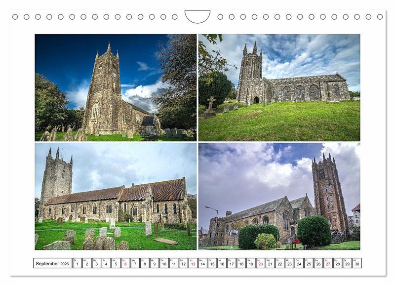 September: Parish Church of Saint James, Kilkhampton - Cornwall, All Saints Parish Church, West Alvington - Devon, All Saints Church, Lydd - Kent, Parish Church of St. Michael the Archangel, Newquay - Cornwall