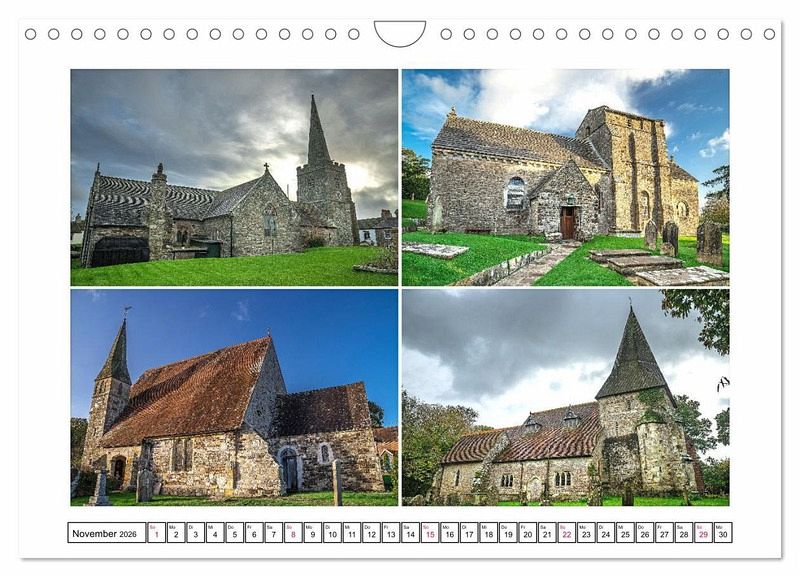 November: St. Gerrans Church, Gerrans - Cornwall, St. Nicholas Church, Studland - Dorset, St. Peter´s Church, Newenden - Kent, All Saints Church, Beckley - East Sussex