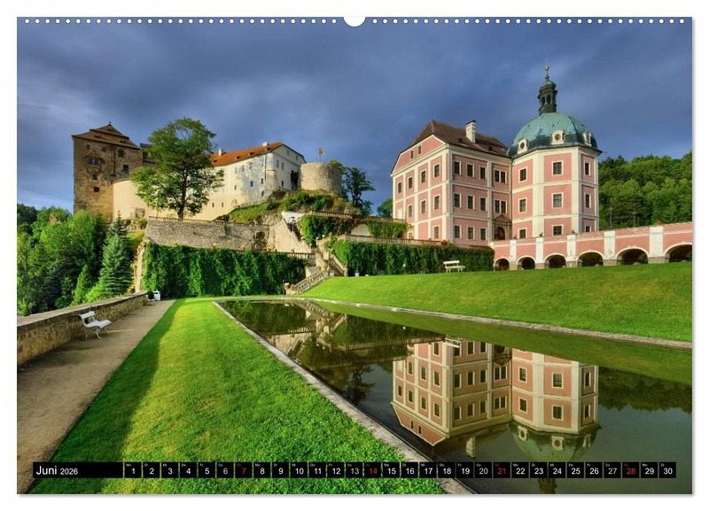 Mit diesem Kalender holen Sie sich Eindrücke der malerischen böhmischen Städte, Burgen und Kirchen nach Hause. Prag, Karlovy Vary und Liberec sind einige der vorgesetellten Orte.