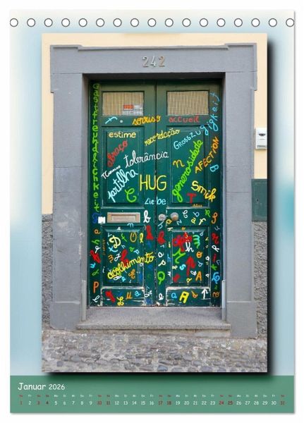 Entdecke die faszinierende Kunstszene Madeiras mit dem einzigartigen Kalender "Street Art auf Türen in Funchal, Madeira". Die charmante Altstadt von Funchal ist berühmt für ihre kunstvoll bemalten Türen, die von talentierten Künstlern in lebendigen Farben und kreativen Motiven gestaltet wurden.