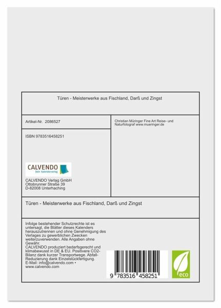 QUALITÄT - Hochwertiger Fotokalender mit 12 wunderschönen Motiven auf lichtbeständigem Bilderdruckpapier, robuste Spiralbindung.NACHHALTIG - deutliche Abfallreduzierung durch bedarfsgerechte Einzelstückfertigung, umweltfreundliches FSC-zertifiziertes Papier, Produktion in Deutschland, klimabewusste Logistik.PERFEKTES GESCHENK - Kalender für Freunde und Familie, für Kinder und Erwachsene, jung und alt, zu Weihnachten, Geburtstag oder zwischendurch.VIELFALT - Bildkalender in verschiedenen Formaten, z.B. DIN A5, DIN A4, DIN A3 sowie DIN A2. Ob Naturmotiv, Gemälde oder Fotos, ideal für ein persönliches Wohlfühlambiente.Der Kalender zeigt einzigartige Darßer Haustüren, eine regionale Besonderheit von Mecklenburg-Vorpommern. von Autor(in): Christian Müringer