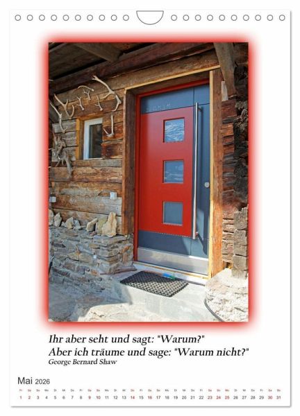 QUALITÄT - Hochwertiger Fotokalender mit 12 wunderschönen Motiven auf lichtbeständigem Bilderdruckpapier, robuste Spiralbindung mit Aufhängebügel.NACHHALTIG - deutliche Abfallreduzierung durch bedarfsgerechte Einzelstückfertigung, umweltfreundliches FSC-zertifiziertes Papier, Produktion in Deutschland, klimabewusste Logistik.PERFEKTES GESCHENK - Kalender für Freunde und Familie, für Kinder und Erwachsene, jung und alt, zu Weihnachten, Geburtstag oder zwischendurch.VIELFALT - Bildkalender in verschiedenen Formaten, z.B. DIN A5, DIN A4, DIN A3 sowie DIN A2. Ob Naturmotiv, Gemälde oder Fotos, ideal für ein persönliches Wohlfühlambiente.Türen sind der Weg zu neuen Gedanken von Autor(in): Klaus Scholz