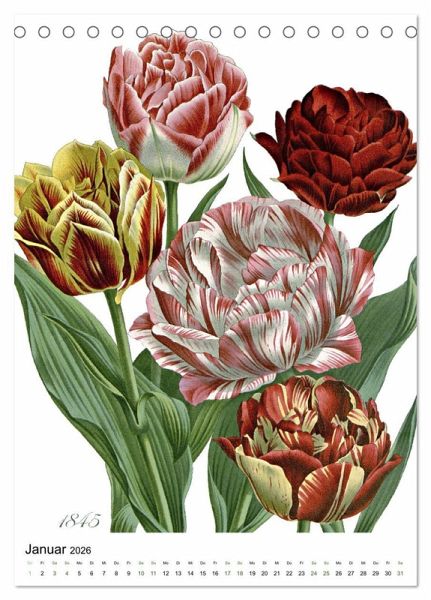 In der Blumensprache steht sie für Liebe und Zuneigung, Ruhm und Bewunderung, im Jahreszyklus ist sie ein Symbol des Frühlings - die Tulpe. Der Kalender präsentiert großformatig 12 farbige Tulpen - Illustrationen aus vergangener Zeit von unerhörter Genauigkeit und Schönheit. Lassen Sie sich bezaubern von der Anmut der Königin unter den Frühlingsblumen. Frühling für das ganze Jahr! Eine besondere Geschenkidee für Blumenliebhaber, Botanikfans, Gärtner und Kunstliebhaber. Oder schenken Sie ihn sich doch einfach selbst!
