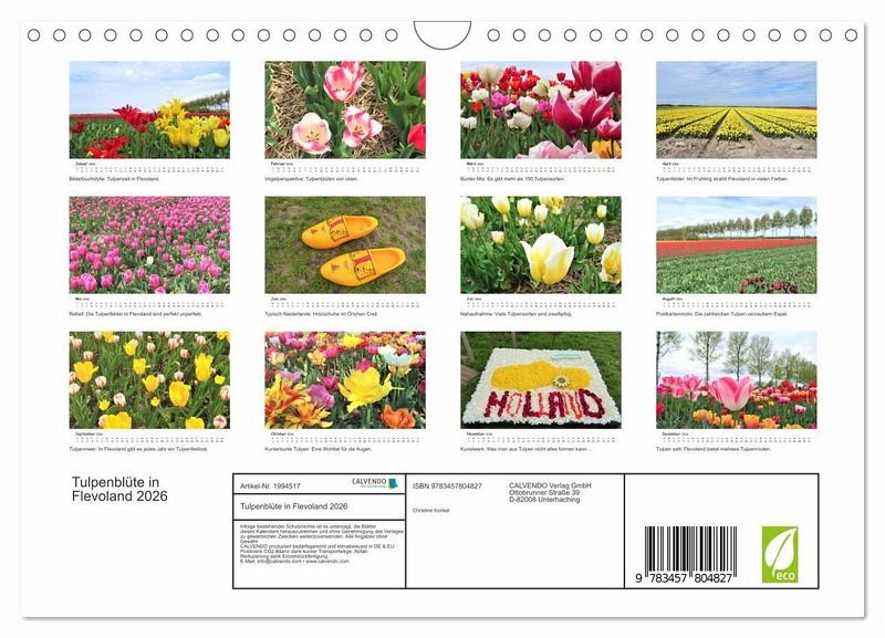 QUALITÄT - Hochwertiger Fotokalender mit 12 wunderschönen Motiven auf lichtbeständigem Bilderdruckpapier, robuste Spiralbindung mit Aufhängebügel.NACHHALTIG - deutliche Abfallreduzierung durch bedarfsgerechte Einzelstückfertigung, umweltfreundliches FSC-zertifiziertes Papier, Produktion in Deutschland, klimabewusste Logistik.PERFEKTES GESCHENK - Kalender für Freunde und Familie, für Kinder und Erwachsene, jung und alt, zu Weihnachten, Geburtstag oder zwischendurch.VIELFALT - Bildkalender in verschiedenen Formaten, z.B. DIN A5, DIN A4, DIN A3 sowie DIN A2. Ob Naturmotiv, Gemälde oder Fotos, ideal für ein persönliches Wohlfühlambiente.Tulpenblüte in Flevoland von Autor(in): Christine Konkel