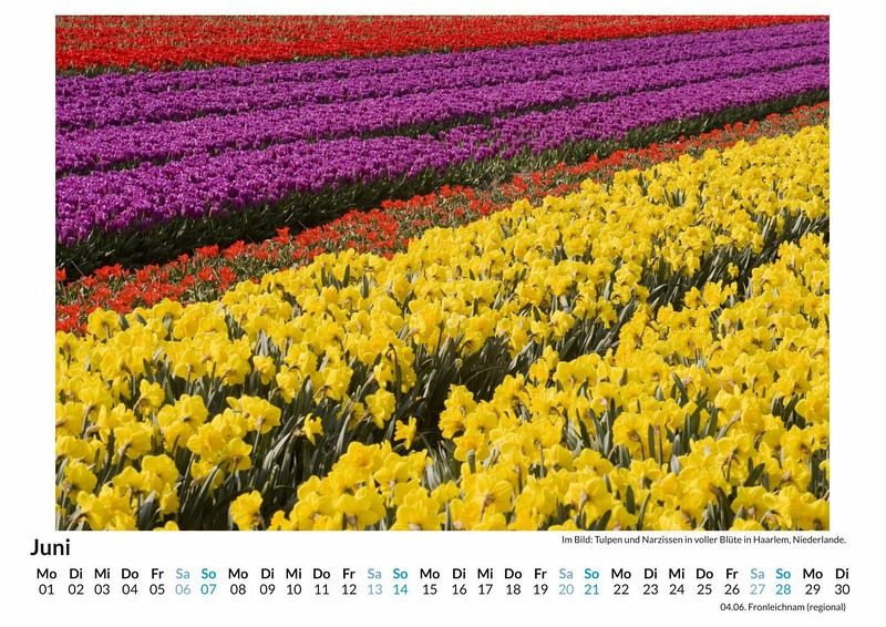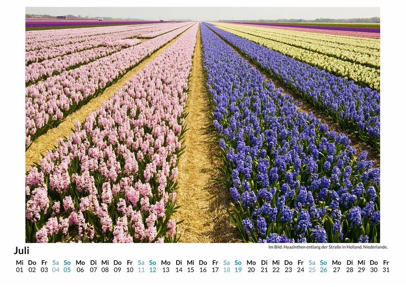 Tauchen Sie ein in die farbenprächtige Welt der Tulpenfelder in Holland! Dieser exklusive Wandkalender bringt die atemberaubende Schönheit der niederländischen Tulpenlandschaften direkt in Ihr Zuhause. Genießen Sie 12 sorgfältig ausgewählte Motive, die jeden Monat aufs Neue verzaubern. Gedruckt auf hochwertigem, lichtbeständigem Bilderdruckpapier, bleibt die Brillanz der Farben das ganze Jahr über erhalten. Nachhaltigkeit liegt uns am Herzen: Unsere Kalender werden in Deutschland auf FSC-zertifiziertem Papier produziert. Holen Sie sich ein Stück Natur und Eleganz an Ihre Wand - perfekt als Geschenk oder für Ihr eigenes Zuhause! Hochwertig Erleben Sie ein Jahr voller Eleganz mit unserem Premium-Fotokalender. Jedes der 12 Motive ist auf hochwertigem, lichtbeständigem Bilderdruckpapier gedruckt, um die Lebendigkeit jedes Bildes zu bewahren. Die robuste Spiralbindung gewährleistet Langlebigkeit und einfache Handhabung. Nachhaltig Unser Engagement für die Umwelt spiegelt sich in jedem Exemplar wider. Durch die Produktion auf Abruf reduzieren wir signifikant unseren Abfall. Wir verwenden ausschließlich umweltfreundliches, FSC-zertifiziertes Papier. Stolz gefertigt in Deutschland, achten wir bei unserer Logistik auf Klimaschutz, um unseren ökologischen Fußabdruck zu minimieren. Das ideale Geschenk Dieser Kalender ist das perfekte Präsent für jeden Anlass - ob Weihnachten, Geburtstage oder einfach als liebevolle Aufmerksamkeit zwischendurch. Geeignet für Freunde, Familie, Kinder und Erwachsene gleichermaßen, bereichert er jedes Zuhause mit seiner Vielfalt und Schönheit, unabhängig vom Alter der Beschenkten.