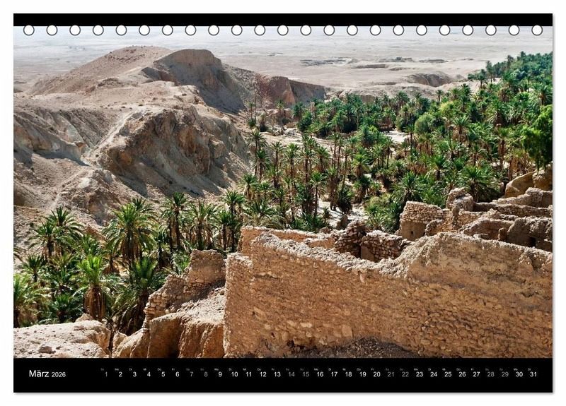 Fotografische Impressionen einer Tunesien-Reise ausgehend von Mahdia, dem größten Fischereihafen des Landes, über Douz am Rande der Wüste Sahara bis zur Bergoase Chébika am Fuß des Atlasgebirges. Der Kalender zeigt Motive eindrucksvoller Landschaften sowie persönliche Begegnungen mit der Arbeitswelt des Landes.