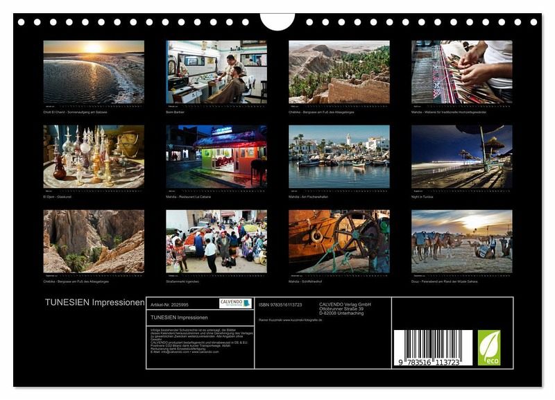 QUALITÄT - Hochwertiger Fotokalender mit 12 wunderschönen Motiven auf lichtbeständigem Bilderdruckpapier, robuste Spiralbindung mit Aufhängebügel.NACHHALTIG - deutliche Abfallreduzierung durch bedarfsgerechte Einzelstückfertigung, umweltfreundliches FSC-zertifiziertes Papier, Produktion in Deutschland, klimabewusste Logistik.PERFEKTES GESCHENK - Kalender für Freunde und Familie, für Kinder und Erwachsene, jung und alt, zu Weihnachten, Geburtstag oder zwischendurch.VIELFALT - Bildkalender in verschiedenen Formaten, z.B. DIN A5, DIN A4, DIN A3 sowie DIN A2. Ob Naturmotiv, Gemälde oder Fotos, ideal für ein persönliches Wohlfühlambiente.Fotografien - Impressionen aus Tunesien von Autor(in): Rainer Kuczinski