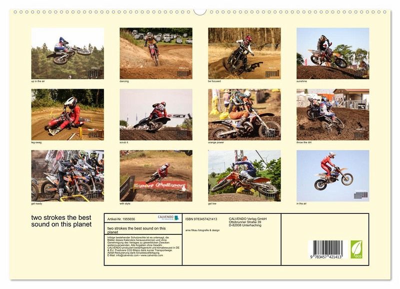 Sie suchen einen abwechslungsreichen Kalender? Mit dem two stroke Kalender sind Sie fündig geworden. Actionreiche und spektakuläre Aufnahmen machen diesen Kalender zu etwas ganz Besonderem.