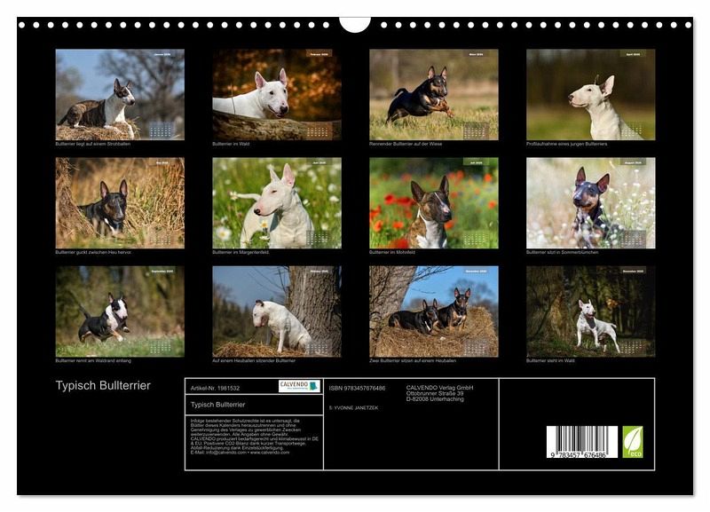 QUALITÄT - Hochwertiger Fotokalender mit 12 wunderschönen Motiven auf lichtbeständigem Bilderdruckpapier, robuste Spiralbindung mit Aufhängebügel.NACHHALTIG - deutliche Abfallreduzierung durch bedarfsgerechte Einzelstückfertigung, umweltfreundliches FSC-zertifiziertes Papier, Produktion in Deutschland, klimabewusste Logistik.PERFEKTES GESCHENK - Kalender für Freunde und Familie, für Kinder und Erwachsene, jung und alt, zu Weihnachten, Geburtstag oder zwischendurch.VIELFALT - Bildkalender in verschiedenen Formaten, z.B. DIN A5, DIN A4, DIN A3 sowie DIN A2. Ob Naturmotiv, Gemälde oder Fotos, ideal für ein persönliches Wohlfühlambiente.Tolle Fotografien von der Hunderasse Bullterrier. von Autor(in): Yvonne Janetzek