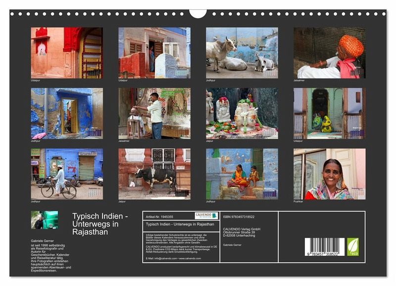 QUALITÄT - Hochwertiger Fotokalender mit 12 wunderschönen Motiven auf lichtbeständigem Bilderdruckpapier, robuste Spiralbindung mit Aufhängebügel.NACHHALTIG - deutliche Abfallreduzierung durch bedarfsgerechte Einzelstückfertigung, umweltfreundliches FSC-zertifiziertes Papier, Produktion in Deutschland, klimabewusste Logistik.PERFEKTES GESCHENK - Kalender für Freunde und Familie, für Kinder und Erwachsene, jung und alt, zu Weihnachten, Geburtstag oder zwischendurch.VIELFALT - Bildkalender in verschiedenen Formaten, z.B. DIN A5, DIN A4, DIN A3 sowie DIN A2. Ob Naturmotiv, Gemälde oder Fotos, ideal für ein persönliches Wohlfühlambiente.Farbenfrohe Kleidung, religiöse Rituale und das alltägliche Leben im indischen Wüstenstaat lassen die faszinierende Kultur und Lebensweise lebendig werden. von Autor(in): Gabriele Gerner-Haudum
