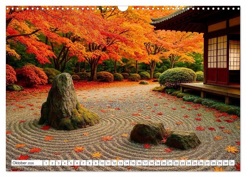 Oktober: Japanischer Zen-Garten im Herbst. Aki no Nihon no zen teien.