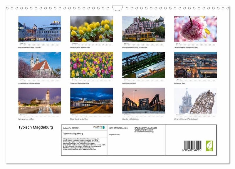 QUALITÄT - Hochwertiger Fotokalender mit 12 wunderschönen Motiven auf lichtbeständigem Bilderdruckpapier, robuste Spiralbindung mit Aufhängebügel.NACHHALTIG - deutliche Abfallreduzierung durch bedarfsgerechte Einzelstückfertigung, umweltfreundliches FSC-zertifiziertes Papier, Produktion in Deutschland, klimabewusste Logistik.PERFEKTES GESCHENK - Kalender für Freunde und Familie, für Kinder und Erwachsene, jung und alt, zu Weihnachten, Geburtstag oder zwischendurch.VIELFALT - Bildkalender in verschiedenen Formaten, z.B. DIN A5, DIN A4, DIN A3 sowie DIN A2. Ob Naturmotiv, Gemälde oder Fotos, ideal für ein persönliches Wohlfühlambiente.Typisch Magdeburg - Bilder einer Landeshauptstadt von Autor(in): Stephan Schulz