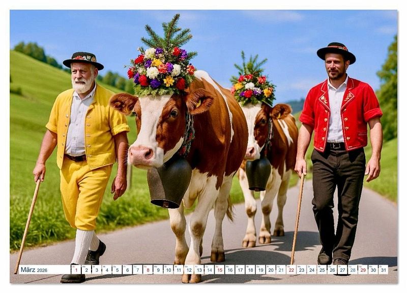 Entdecken Sie die Schweiz in ihrer ganzen Vielfalt: Von Alphornbläsern bis Uhrenhandwerk. Der Kalender zeigt abwechslungsreiche Bilder, die Steffani Lehmann mit Unterstützung einer KI editiert hat. Die Motive fangen das Herz der Schweiz(er) ein: authentisch, charmant und unverwechselbar.