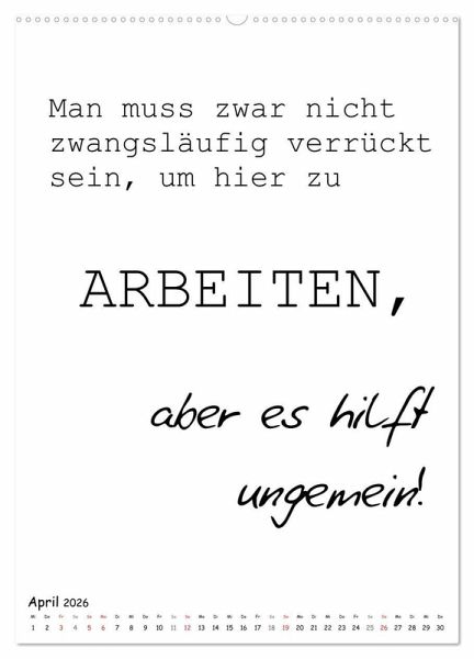Lustige Sprüche für das Büro sind Kult! Sarkastisch, frech, ironisch, sehr originell und typographisch cool gestaltet. Jeder Monat ist schlicht schwarz-weiss gehalten und ein echter Hingucker der für gute Laune und jede Menge Schmunzeln sorgt.