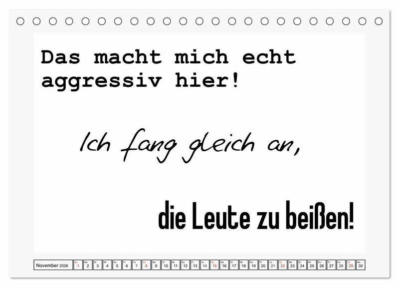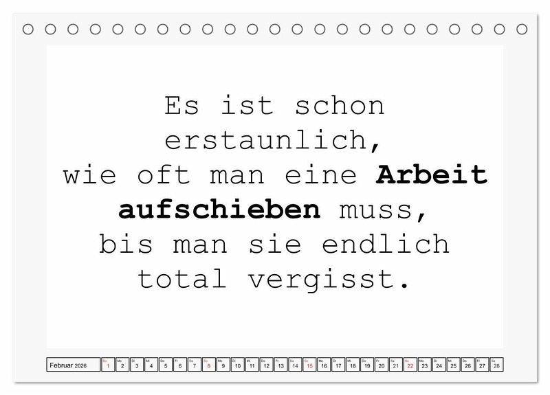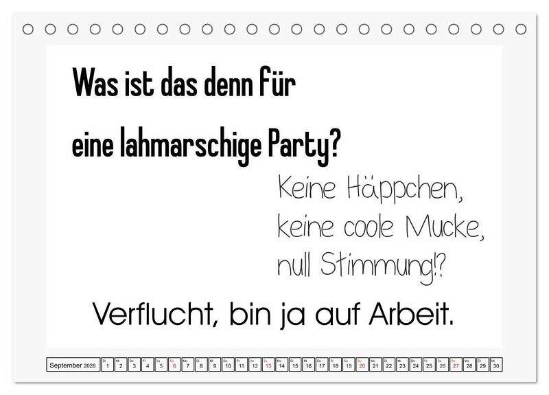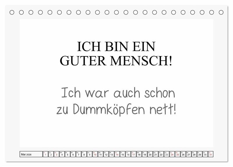 Sprüche für das Büro sind Kult! Sarkastisch, frech, und manchmal auch ziemlich fies. Dieser Kalender ist originell und cool gestaltet. Jeder Monat für sich ist schlicht gehalten, hat Platz für unzählige Notizen und sorgt für Lacher.