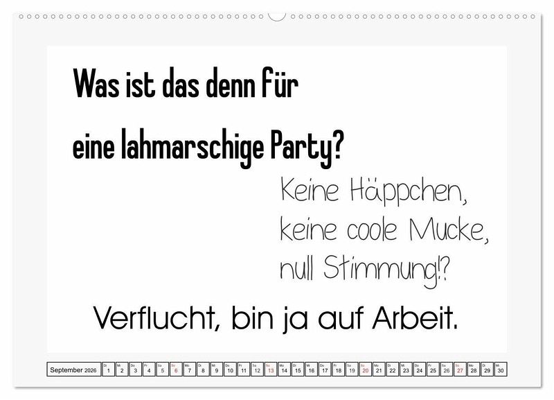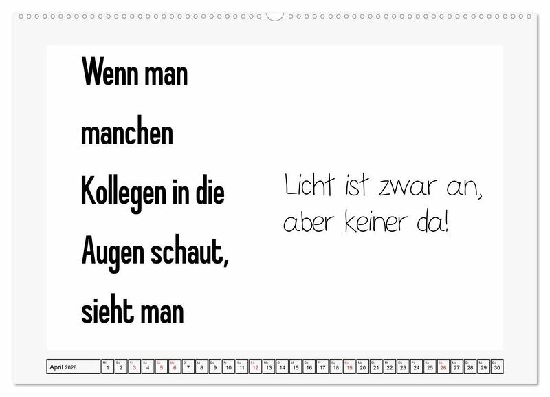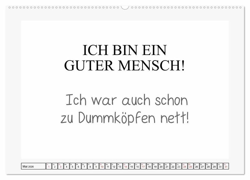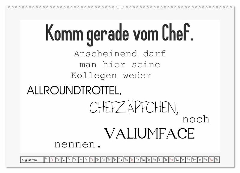 Sprüche für das Büro sind Kult! Sarkastisch, frech, und manchmal auch ziemlich fies. Dieser Kalender ist originell und cool gestaltet. Jeder Monat für sich ist schlicht gehalten, hat Platz für unzählige Notizen und sorgt für Lacher.