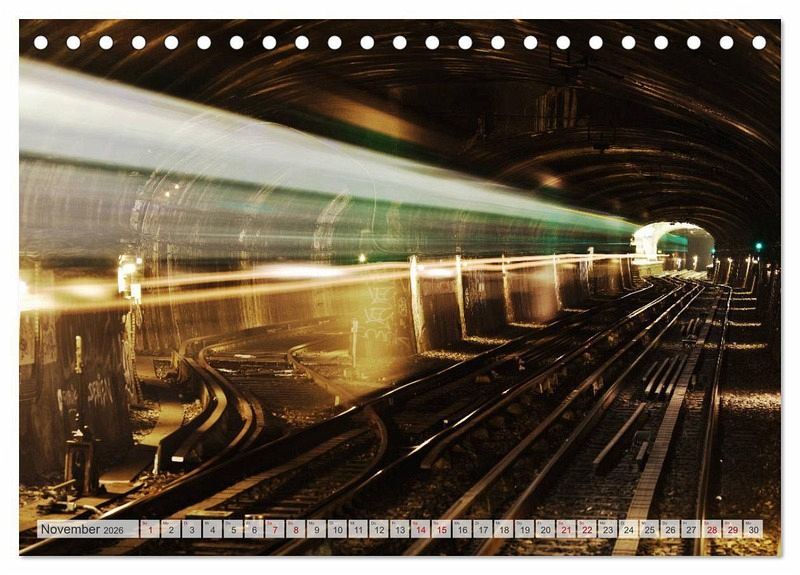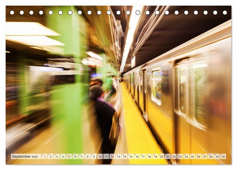 In Großstädten sind U-Bahnen eine der wichtigsten Verkehrsmittel. U-Bahnhöfe sind oft von nüchterner Architektur aber ab und an auch mal künstlerisch gestaltet. Man passiert diese Bahnhöfe beim Reisen meist auf die Schnelle, nimmt man sich aber die Zeit, so haben sie ihren ganz besonderen Reiz. Der Kalender zeigt 12 Fotografien mit Szenen in und an der U-Bahn in europäischen Städten und New York