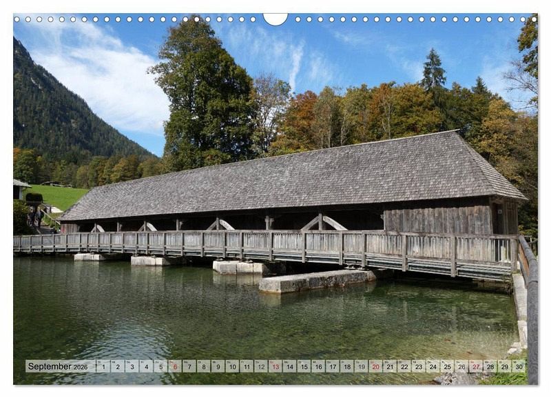 September: Holzbrücke über die Königsseer Ache, Berchdesgaden
