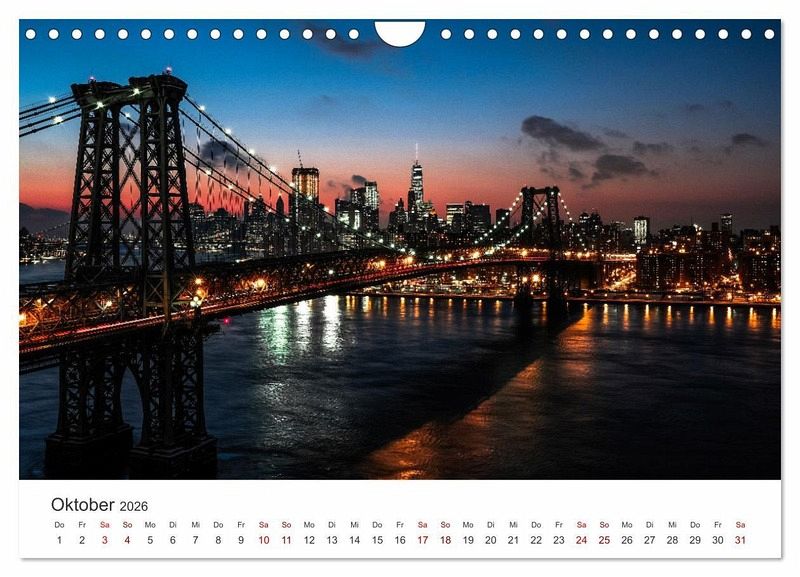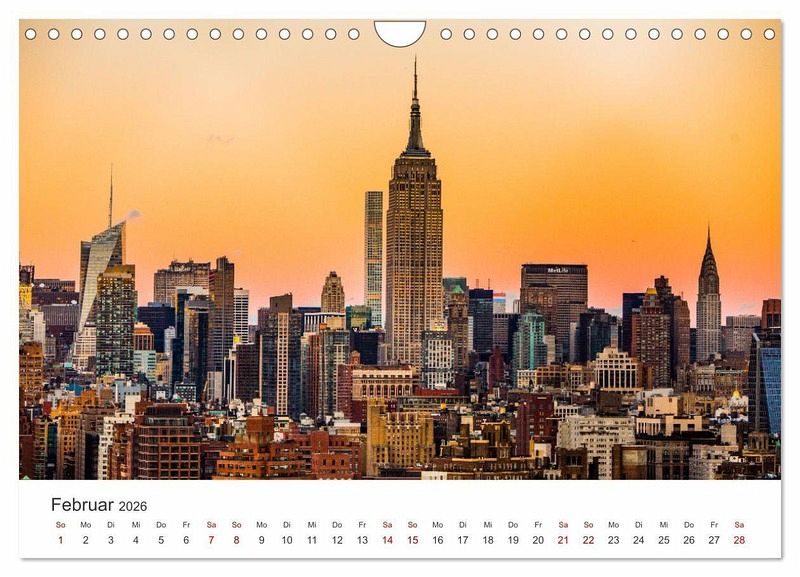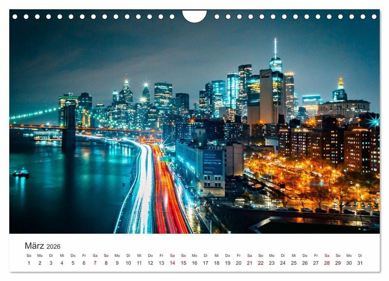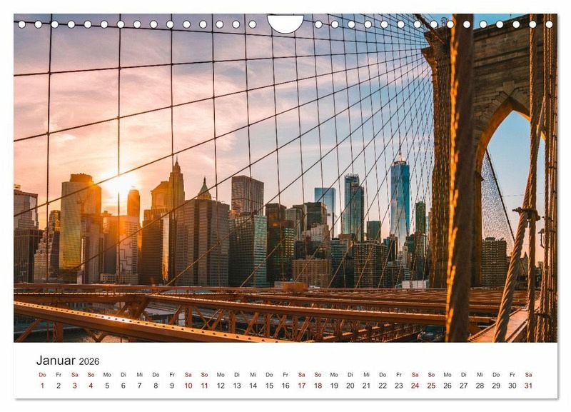 Einmal über die Brooklyn Bridge gehen, einmal durch den Central Park schlendern, einmal am Times Square stehen. Dieses New York-Feeling können Sie mit diesem Kalender in Ihr Zuhause bringen. Lassen Sie sich von 12 faszinierenden Bildern beeindrucken und entdecken Sie New Yorks Sehenswürdigkeiten auf eine ganz neue Weise.