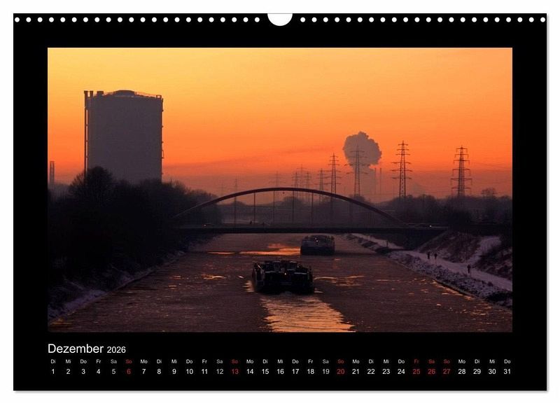 Dezember: Rhein-Herne-Kanal bei Oberhausen mit Gasometer