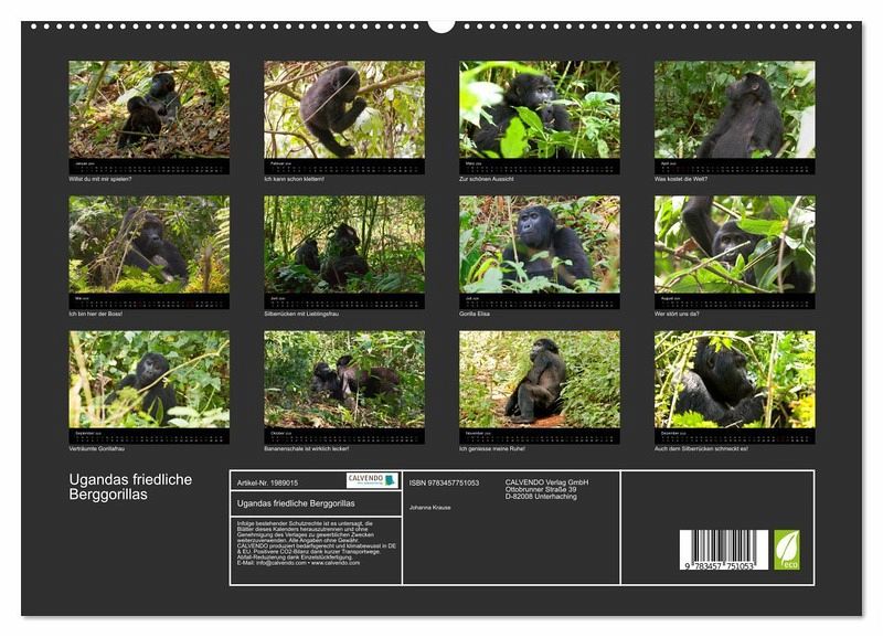 PREMIUM-LINIE - Brillanter Fotokalender mit 12 wunderschönen Motiven, Kunstdruck in Hochglanz in Museumsqualität.QUALITÄT - edle Materialien, stabile Rückwand mit 2 innovativen Einstecktaschen für eine optimale Präsentation an der Wand.NACHHALTIG - deutliche Abfallreduzierung durch bedarfsgerechte Einzelstückfertigung, umweltfreundliches FSC-zertifiziertes Papier, Produktion in Deutschland, klimabewusste Logistik.PERFEKTES GESCHENK - Kalender für Freunde und Familie, für Kinder und Erwachsene, jung und alt, zu Weihnachten, Geburtstag oder zwischendurch.Habinyanja Gorillafamilie im Urwald von Uganda von Autor(in): Johanna Krause