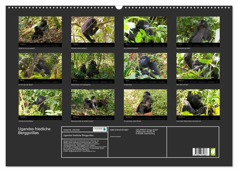 QUALITÄT - Hochwertiger Fotokalender mit 12 wunderschönen Motiven auf lichtbeständigem Bilderdruckpapier, robuste Spiralbindung mit Aufhängebügel.NACHHALTIG - deutliche Abfallreduzierung durch bedarfsgerechte Einzelstückfertigung, umweltfreundliches FSC-zertifiziertes Papier, Produktion in Deutschland, klimabewusste Logistik.PERFEKTES GESCHENK - Kalender für Freunde und Familie, für Kinder und Erwachsene, jung und alt, zu Weihnachten, Geburtstag oder zwischendurch.VIELFALT - Bildkalender in verschiedenen Formaten, z.B. DIN A5, DIN A4, DIN A3 sowie DIN A2. Ob Naturmotiv, Gemälde oder Fotos, ideal für ein persönliches Wohlfühlambiente.Habinyanja Gorillafamilie im Urwald von Uganda von Autor(in): Johanna Krause