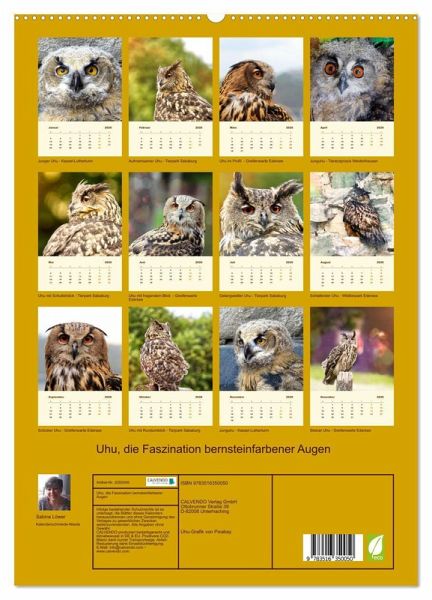 PREMIUM-LINIE - Brillanter Fotokalender mit 12 wunderschönen Motiven, Kunstdruck in Hochglanz in Museumsqualität.QUALITÄT - edle Materialien, stabile Rückwand mit 2 innovativen Einstecktaschen für eine optimale Präsentation an der Wand.NACHHALTIG - deutliche Abfallreduzierung durch bedarfsgerechte Einzelstückfertigung, umweltfreundliches FSC-zertifiziertes Papier, Produktion in Deutschland, klimabewusste Logistik.PERFEKTES GESCHENK - Kalender für Freunde und Familie, für Kinder und Erwachsene, jung und alt, zu Weihnachten, Geburtstag oder zwischendurch.Bezaubernde Fotos des Königs der Nacht, des Uhus von Autor(in): Sabine Löwer