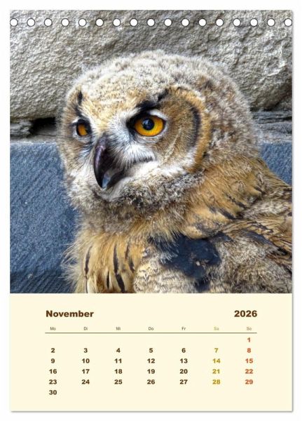 Wer einmal in die wunderschönen bernsteinfarbenen Augen eines Uhus geblickt hat, um den ist es geschehen. So erging es auch der Fotografin, die Sie nun Monat für Monat mit bezaubernden Fotos des nächtlichen Jägers erfreut. Dieser qualitativ hochwertige