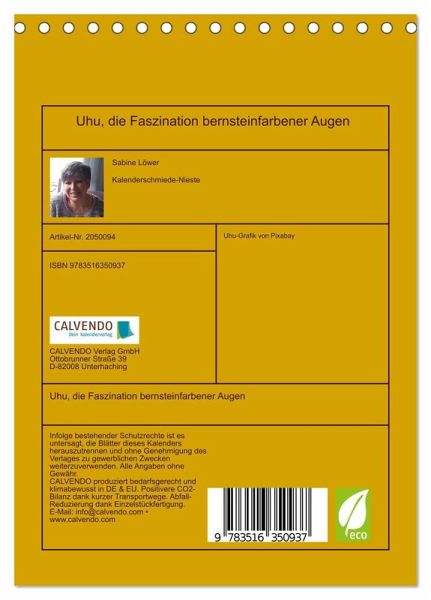 QUALITÄT - Hochwertiger Fotokalender mit 12 wunderschönen Motiven auf lichtbeständigem Bilderdruckpapier, robuste Spiralbindung.NACHHALTIG - deutliche Abfallreduzierung durch bedarfsgerechte Einzelstückfertigung, umweltfreundliches FSC-zertifiziertes Papier, Produktion in Deutschland, klimabewusste Logistik.PERFEKTES GESCHENK - Kalender für Freunde und Familie, für Kinder und Erwachsene, jung und alt, zu Weihnachten, Geburtstag oder zwischendurch.VIELFALT - Bildkalender in verschiedenen Formaten, z.B. DIN A5, DIN A4, DIN A3 sowie DIN A2. Ob Naturmotiv, Gemälde oder Fotos, ideal für ein persönliches Wohlfühlambiente.Bezaubernde Fotos des Königs der Nacht, des Uhus von Autor(in): Sabine Löwer