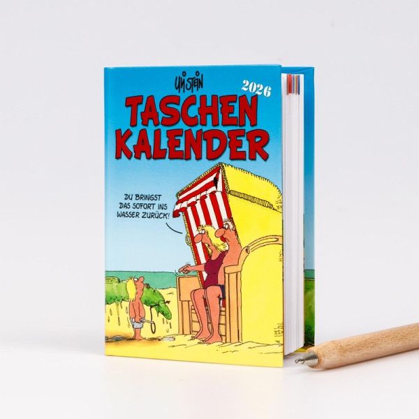 Das Jahr lachend meistern: Uli Steins Taschenkalender hilft Ihnen dabei. Der kleine, praktische Buchkalender lässt sich nämlich einfach überallhin mitnehmen. Er ist so klein, dass er in jede Tasche passt. Und trotzdem enthält er genug Platz, um alle wichtigen Termine festzuhalten.