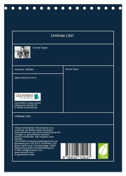 hwertiger Fotokalender mit 12 wunderschönen Motiven auf lichtbeständigem Bilderdruckpapier, robuste Spiralbindung.NACHHALTIG - deutliche Abfallreduzierung durch bedarfsgerechte Einzelstückfertigung, umweltfreundliches FSC-zertifiziertes Papier, Produktion in Deutschland, klimabewusste Logistik.PERFEKTES GESCHENK - Kalender für Freunde und Familie, für Kinder und Erwachsene, jung und alt, zu Weihnachten, Geburtstag oder zwischendurch.VIELFALT - Bildkalender in verschiedenen Formaten, z.B. DIN A5, DIN A4, DIN A3 sowie DIN A2. Ob Naturmotiv, Gemälde oder Fotos, ideal für ein persönliches Wohlfühlambiente.Zwölf Kapitel aus der Welt der Dark Academia von Autor(in): Daniela Tapper