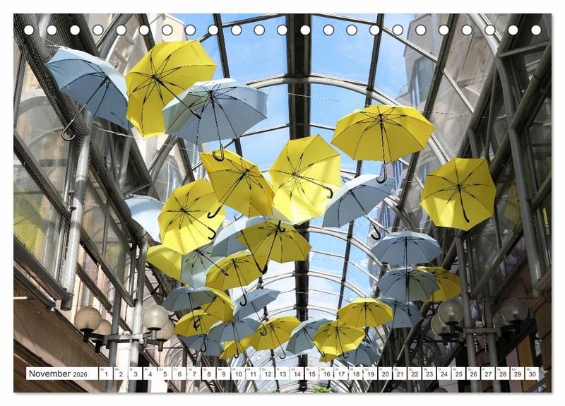 Es begann mit farbenfrohen Schirmen in Südeuropa und erfreut inzwischen immer mehr Besucher und Einwohner vieler Städte weltweit. Die fröhlichen Umbrella Skies schützen vor Sonne oder Regen und spenden viel Lebensfreude für ihre Betrachter. Dieser Kalender zeigt die bunten, fröhlichen Schirme verschiedenster Städte und ist jeden Monat ein Gute-Laune-Garant.