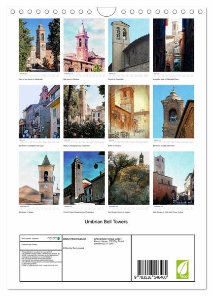 QUALITY - High-quality photo calendar with 12 beautiful images on light-resistant paper, robust spiral binding with hanger.SUSTAINABLE - Significant waste reduction due to print-on-demand production, environmentally friendly FSC-certified paper, produced in the UK, climate-conscious logistical processes.PERFECT GIFT - calendars for friends and family, for children, all ages and all occasions, from Christmas to birthdays and everything in between.LOTS OF CHOICE - Wall calendars in different sizes (DIN A4 and DIN A3), for any topic and personal taste, featuring photography, painting and illustrations.Photo art images depicting beautiful bell towers from towns in Umbria, Italy, author: Dorothy Berry-Lound