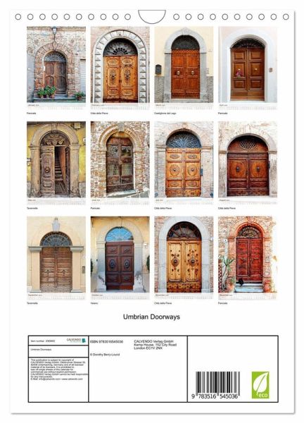 QUALITY - High-quality photo calendar with 12 beautiful images on light-resistant paper, robust spiral binding with hanger.SUSTAINABLE - Significant waste reduction due to print-on-demand production, environmentally friendly FSC-certified paper, produced in the UK, climate-conscious logistical processes.PERFECT GIFT - calendars for friends and family, for children, all ages and all occasions, from Christmas to birthdays and everything in between.LOTS OF CHOICE - Wall calendars in different sizes (DIN A4 and DIN A3), for any topic and personal taste, featuring photography, painting and illustrations.Beautiful artistic images of ornate doorways in Umbria, Italy, author: Dorothy Berry-Lound