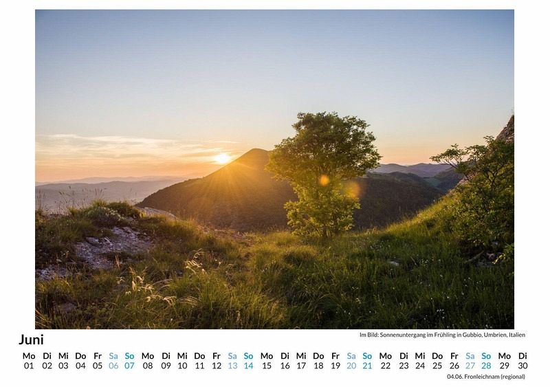 Entdecken Sie die malerische Schönheit Umbriens mit unserem exklusiven Wandkalender! Lassen Sie sich Monat für Monat von 12 atemberaubenden Motiven dieser zauberhaften Region Italiens verzaubern - von sanften Hügeln über historische Städte bis hin zu idyllischen Landschaften. Gedruckt auf hochwertigem, lichtbeständigem Bilderdruckpapier, bringt dieser Kalender die Farben und Details Umbriens perfekt zur Geltung. Nachhaltigkeit liegt uns am Herzen: Unsere Kalender werden in Deutschland auf FSC-zertifiziertem Papier produziert. Holen Sie sich ein Stück Italien nach Hause und genießen Sie das ganze Jahr über die faszinierende Vielfalt Umbriens! Perfekt auch als Geschenk! Hochwertig Erleben Sie ein Jahr voller Eleganz mit unserem Premium-Fotokalender. Jedes der 12 Motive ist auf hochwertigem, lichtbeständigem Bilderdruckpapier gedruckt, um die Lebendigkeit jedes Bildes zu bewahren. Die robuste Spiralbindung gewährleistet Langlebigkeit und einfache Handhabung. Nachhaltig Unser Engagement für die Umwelt spiegelt sich in jedem Exemplar wider. Durch die Produktion auf Abruf reduzieren wir signifikant unseren Abfall. Wir verwenden ausschließlich umweltfreundliches, FSC-zertifiziertes Papier. Stolz gefertigt in Deutschland, achten wir bei unserer Logistik auf Klimaschutz, um unseren ökologischen Fußabdruck zu minimieren. Das ideale Geschenk Dieser Kalender ist das perfekte Präsent für jeden Anlass - ob Weihnachten, Geburtstage oder einfach als liebevolle Aufmerksamkeit zwischendurch. Geeignet für Freunde, Familie, Kinder und Erwachsene gleichermaßen, bereichert er jedes Zuhause mit seiner Vielfalt und Schönheit, unabhängig vom Alter der Beschenkten.