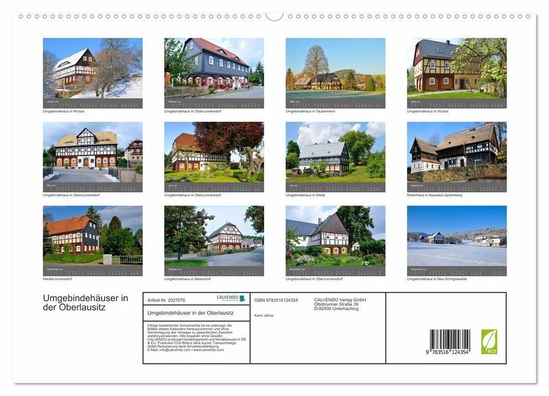 PREMIUM-LINIE - Brillanter Fotokalender mit 12 wunderschönen Motiven, Kunstdruck in Hochglanz in Museumsqualität.QUALITÄT - edle Materialien, stabile Rückwand mit 2 innovativen Einstecktaschen für eine optimale Präsentation an der Wand.NACHHALTIG - deutliche Abfallreduzierung durch bedarfsgerechte Einzelstückfertigung, umweltfreundliches FSC-zertifiziertes Papier, Produktion in Deutschland, klimabewusste Logistik.PERFEKTES GESCHENK - Kalender für Freunde und Familie, für Kinder und Erwachsene, jung und alt, zu Weihnachten, Geburtstag oder zwischendurch.Das Umgebindehaus ist charakteristisch für die Oberlausitz von Autor(in): Karin Jähne