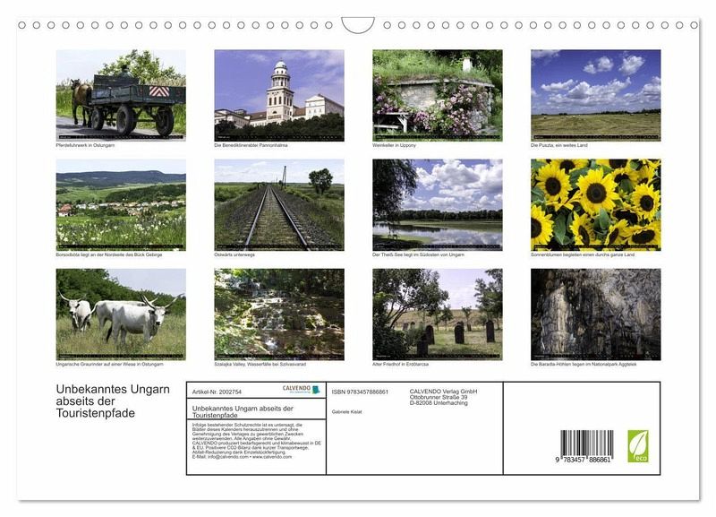 jeweiliges Sujet erachtet und dem Kalenderfreund daher besonders an Herz legen möchte. Bei Ungarn denkt man sofort an den Plattensee oder Budapest. Doch dieses Land hat so viel mehr zu bieten. Lassen sie sich auf eine Reise in das unbekannte Ungarn mitnehmen.