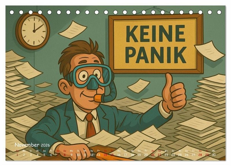 Egal ob dein Drucker in Flammen steht, du auf der Suche nach dem letzten Kaffee bist oder dein Kundenservice zum Musical wird - dieser Kalender kennt deine Alltagsdramen nur zu gut.