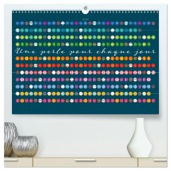 Ce calendrier de perles unique et individuel décore chaque mur avec son design esthétique et simple de perles sur fond sombre. Chaque mois = une rangée de perles. Les perles grises représentent les samedis et les perles blanches les dimanches.Sur chaque feuille du mois, on a en même temps un aperçu de l'année, car les cercles encore sombres et non remplis sont les jours des mois à venir sur les autres feuilles du calendrier. Les dimanches sont marqués par des anneaux blancs et un "S". Chaque perle du mercredi est conçue dans le schéma de couleurs inversé par rapport aux autres perles des jours de la semaine.Ce calendrier est renouvelé chaque année et peut devenir un objet fixe de votre intérieur. C'est aussi un cadeau idéal !