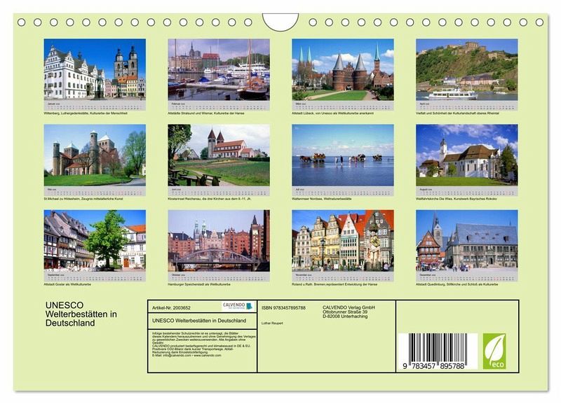 QUALITÄT - Hochwertiger Fotokalender mit 12 wunderschönen Motiven auf lichtbeständigem Bilderdruckpapier, robuste Spiralbindung mit Aufhängebügel.NACHHALTIG - deutliche Abfallreduzierung durch bedarfsgerechte Einzelstückfertigung, umweltfreundliches FSC-zertifiziertes Papier, Produktion in Deutschland, klimabewusste Logistik.PERFEKTES GESCHENK - Kalender für Freunde und Familie, für Kinder und Erwachsene, jung und alt, zu Weihnachten, Geburtstag oder zwischendurch.VIELFALT - Bildkalender in verschiedenen Formaten, z.B. DIN A5, DIN A4, DIN A3 sowie DIN A2. Ob Naturmotiv, Gemälde oder Fotos, ideal für ein persönliches Wohlfühlambiente.Zeugnisse kulturhistorischer Bauten und Naturstätten von Autor(in): Lothar Reupert
