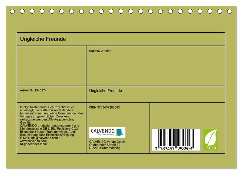 QUALITÄT - Hochwertiger Fotokalender mit 12 wunderschönen Motiven auf lichtbeständigem Bilderdruckpapier, robuste Spiralbindung.NACHHALTIG - deutliche Abfallreduzierung durch bedarfsgerechte Einzelstückfertigung, umweltfreundliches FSC-zertifiziertes Papier, Produktion in Deutschland, klimabewusste Logistik.PERFEKTES GESCHENK - Kalender für Freunde und Familie, für Kinder und Erwachsene, jung und alt, zu Weihnachten, Geburtstag oder zwischendurch.VIELFALT - Bildkalender in verschiedenen Formaten, z.B. DIN A5, DIN A4, DIN A3 sowie DIN A2. Ob Naturmotiv, Gemälde oder Fotos, ideal für ein persönliches Wohlfühlambiente.Freundschaft zwischen großen und kleinen Tieren von Autor(in): Talpha