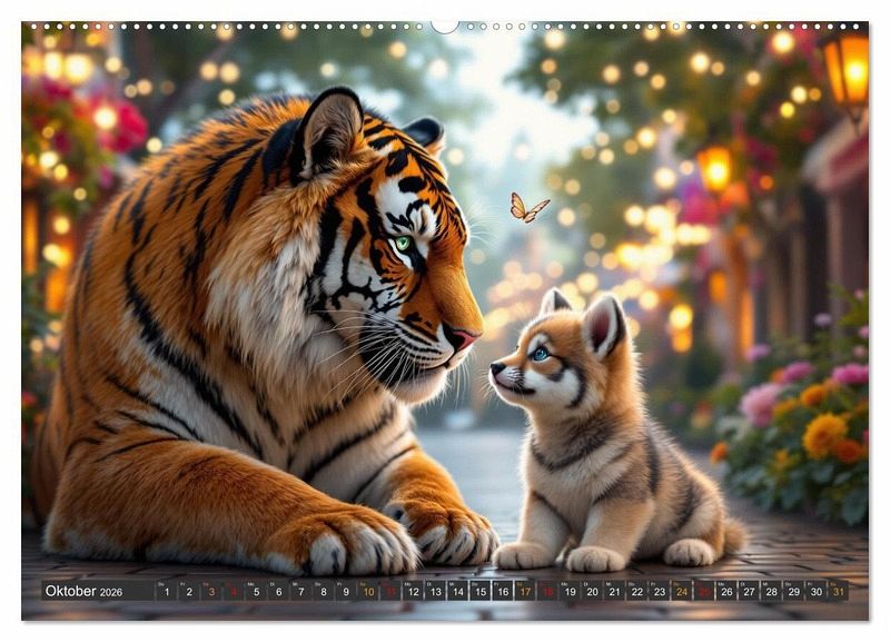 Erleben Sie die magische Welt von ungleichen Tierfreundschaften. In diesem mit Hilfe von KI erstellten Familienkalender finden Sie 12 Monate voller herzlicher Momente, die Sie mit Ihren Liebsten teilen möchten. Ob Wolf, Maus, Katze oder Kojote, die Freundschaften überwinden Grenzen. Der Kalender ist ein ideales Geschenk für alle, die Tiere lieben.