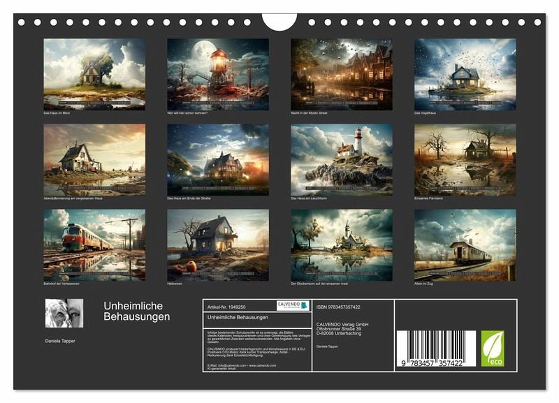 Lust auf ein bisschen Grusel und schaurig schöne und verwunschene Orte, die Ihre Fantasie anregen? Dann ist dieser Kalender genau das Richtige für Sie! Er zeigt Ihnen jeden Monat, Dank einer KI, eine andere Seite der dunklen Romantik - von verlassenen Leuchttürmen, über neblige Straßen bis hin zu geheimnisvollen Ruinen! Kommen Sie mit auf eine Reise in eine andere Welt!