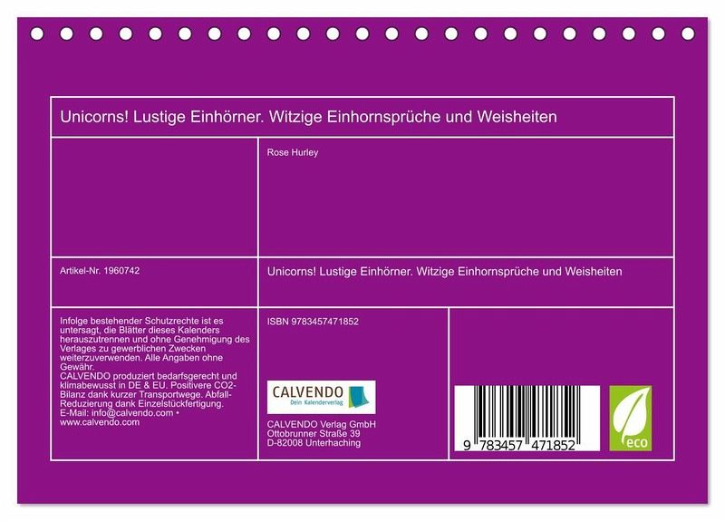QUALITÄT - Hochwertiger Fotokalender mit 12 wunderschönen Motiven auf lichtbeständigem Bilderdruckpapier, robuste Spiralbindung.NACHHALTIG - deutliche Abfallreduzierung durch bedarfsgerechte Einzelstückfertigung, umweltfreundliches FSC-zertifiziertes Papier, Produktion in Deutschland, klimabewusste Logistik.PERFEKTES GESCHENK - Kalender für Freunde und Familie, für Kinder und Erwachsene, jung und alt, zu Weihnachten, Geburtstag oder zwischendurch.VIELFALT - Bildkalender in verschiedenen Formaten, z.B. DIN A5, DIN A4, DIN A3 sowie DIN A2. Ob Naturmotiv, Gemälde oder Fotos, ideal für ein persönliches Wohlfühlambiente.Lachen mit niedlichen Einhörnern! von Autor(in): Rose Hurley